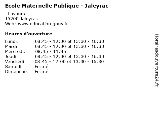 | Lundi | 08:45-12:00 et 13:30-16:30 |