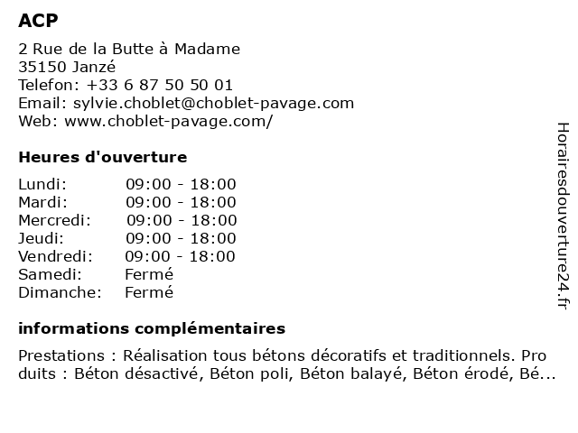 1 Acp (Distance: 15,72 km)40 Allee Madame de Sevigne, 35530 Noyal-sur-Vilaine acp