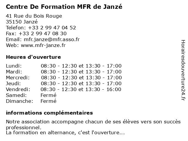 Termes de recherche pour Centre De Formation MFR de Janzé:de, janze, centre, formation, mfr |