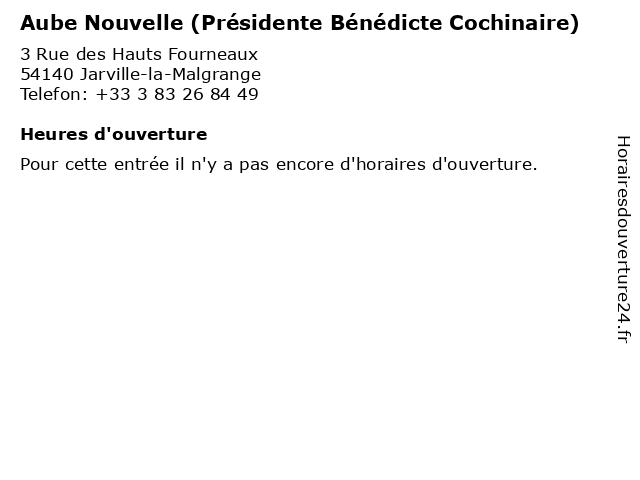 | Appeler Aube Nouvelle (Présidente Bénédicte Cochinaire) | |