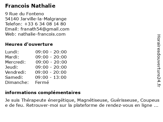 1 Dr Nathalie Wirth - Médecin généraliste - secrétariat (Distance: 1,86 km) 10 Avenue Docteur Heydenreich, 54000 Nancy consultation, docteur, dr, généraliste, med, médecin, médecine, nathalie, secrétariat, traitement, wirth 2 Nathalie Quque - Masseur-kinésithérapeute (Distance: 2,43 km) 24 Rue Emile Gebhart, 54000 Nancy kiné, kinésithérapeute, masseur, nathalie, quque, rééducation, soin 3 Maître Nathalie Bailly - Avocate (Distance: 2,63 km) 165 boulevard d’Haussonville, 54000 Nancy avocate, avocats, bailly, cabinet, conseils, contentieux, juridique, justice, litiges, maître, nathalie, services 4 AXA Assurance EIRL GABRIEL JEAN-FRANCOIS (Distance: 2,75 km) 2 Rue du Cardinal Tisserant, 54000 Nancy assurance, assurance appartement, assurance auto, assurance entreprise, assurance epargne, assurance habitation, assurance maison, assurance professionnelle, assurance santé, assurance voiture, axa, banque, eirl, francois, gabriel, jean 5 Maître Nathalie Lanotte-Noel - Avocate (Distance: 3,08 km) 34 rue Félix Faure, 54000 Nancy avocat, avocate, droit, juridictionnelle, lanotte, maître, nathalie, noel, négociation 6 Dr. Christian Mole Nathalie Godard Mole et Anne Polo - Dentiste (Distance: 3,35 km) 57 Avenue Foch, 54000 Nancy anne, christian, dentiste, docteur, dr., et, godard, medecins, mole, nathalie, polo, sante |
