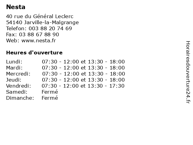 | Lundi | 07:30-12:00 et 13:30-18:00 |