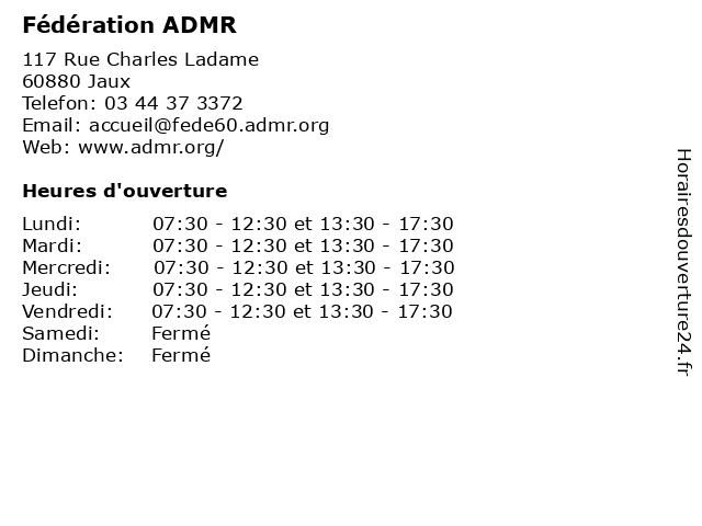 | Lundi | 07:30-12:30 et 13:30-17:30 |