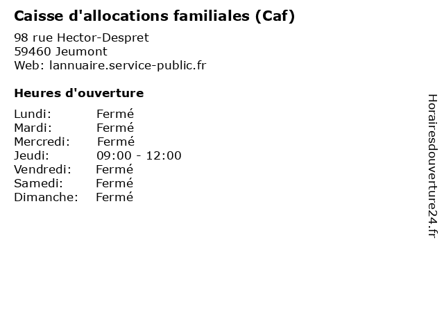 1 Caisse d'allocations familiales (Caf) (Distance: 8,98 km) 15 rue Roger-Salengro, 59680 Ferrière-la-Grande caf, caisse, d'allocations, familiales, réseau local 2 Caisse d'allocations familiales (Caf) (Distance: 13,03 km) n/a Rue Alfred-Derkenne, 59750 Feignies caf, caisse, d'allocations, familiales, réseau local 3 Caisse d'allocations familiales (Caf) (Distance: 13,08 km) 117 rue de Louvroil, 59330 Hautmont caf, caisse, d'allocations, familiales, réseau local 4 Caisse D'Allocations Familiales (CAF) (Distance: 13,57 km) 19 Grand'rue, 59740 Solre-le-Château administration, caf, caisse, communes, d'allocations, familiales, service, services publics 5 Caisse d'Epargne (Distance: 0,09 km) 24-26 Rue Hector Despret, 59460 Jeumont banque, caisse, carte, d'epargne, services 6 Caisse Primaire d'Assurance Maladie (CPAM) (Distance: 0,13 km) n/a Boulevard de Lessines, 59460 Jeumont assurances, caisse, cpam, d'assurance, les soins de santé, maladie, pharmacie, primaire, santé, santé primaires |