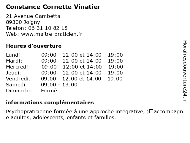 | Lundi | 09:00-12:00 et 14:00-19:00 |