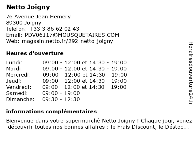 Termes de recherche pour Netto Joigny:joigny, netto |