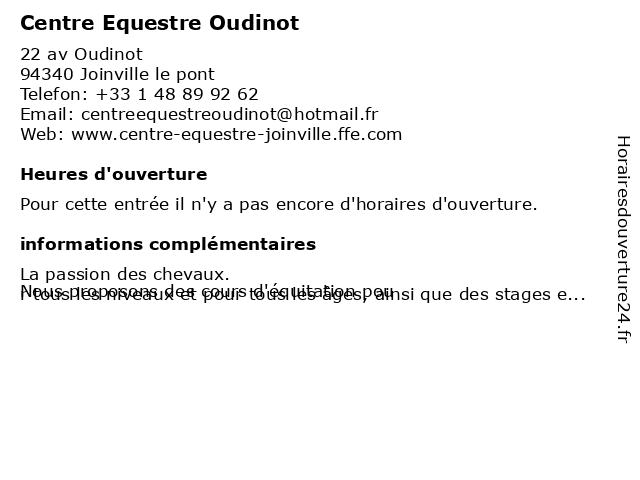 1 Centre Equestre de la Cartoucherie (CLC) (Distance: 2,27 km) 4 Route du Champ de Manoeuvres, 75012 Paris activités, c.l.c, cartoucherie, centre, clc, concours, de, equestre, equitation, la, équestre 2 Centre Equestre Bayard UCPA - Secrétariat (Distance: 3,39 km) 1 Avenue du Polygone, 75012 Paris bayard, centre, club, equestre, equitation, secrétariat, sport, sportif, sports, ucpa, équestre 3 Centre Equestre Bayard Ucpa - Accueil (Distance: 3,39 km) 1 Avenue du Polygone, 75012 Paris accueil, bayard, centre, club, equestre, equitation, sport, sportif, sports, ucpa, équestre 4 Centre Equestre Municipal (Secrétariat) (Distance: 4,07 km) 5 Rue des Hauts Guibouts, 94360 Bry-sur-Marne bry, centre, de, equestre, marne, municipal, secrétariat, sports, sur, Équestre, équestre 5 Maître Anne-Marie Oudinot - Avocate (Distance: 8,24 km) 83-87 avenue d’Italie, 75013 Paris anne, avocate, avocats, cabinet, conseils, contentieux, juridique, justice, litiges, marie, maître, oudinot, services 6 Poney Club - Centre Equestre de La Villette (Distance: 10,15 km) 9 Boulevard Macdonald, 75019 Paris accueil, centre, club, de, equestre, equitation, la, poney, sport, sportif, sports, villette, équestre |