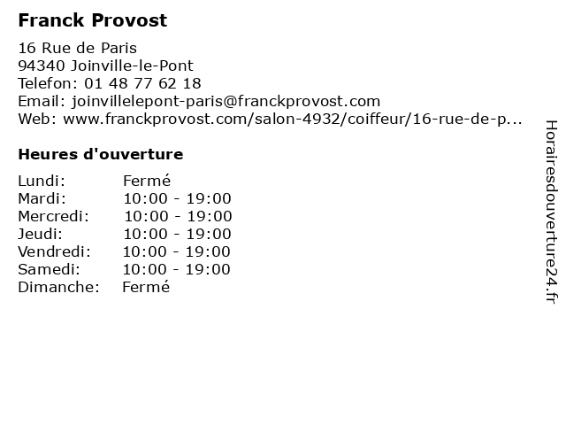 1 Franck Provost (Distance: 2,19 km) 14 PLACE DE LA LOUVIÉRE,, 94100 SAINT MAUR expertise beauté, franck, la marque, provost, tendance coiffure, événement 2 Franck Provost (Distance: 2,46 km) 102 RUE CHARLES DE GAULLE,, 94130 NOGENT SUR MARNE expertise beauté, franck, la marque, provost, tendance coiffure, événement 3 Franck Provost (Distance: 3,76 km) 11 rue du Midi, 94300 Vincennes coiffeur, coiffure, franck, provost, salon 4 Franck Provost (Distance: 5,05 km) 30 Boulevard Paul Vaillant Couturier, 94262 Ivry-sur-Seine coiffeur, coiffure, franck, provost, salon 5 Franck Provost (Distance: 5,46 km) 235 Rue Etienne Marcel, 93556 Montreuil coiffeur, coiffure, franck, provost, salon 6 Franck Provost (Distance: 6,49 km) 234 Boulevard du Mont d'Est, 93193 Noisy-le-Grand alimentation, beauté & santé, culture & loisirs, enfants, franck, high-tech, maison & déco, mode, provost, restaurants |