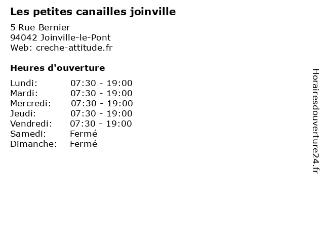 | Lundi | 07:30-19:00 |