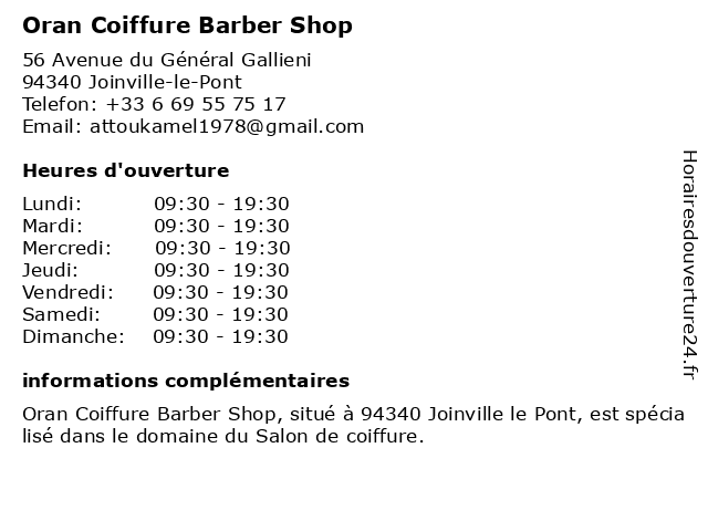 1 Apparence Coiffure (Distance: 0,07 km) 3bis Rue de l'Égalité, 94340 Joinville-le-Pont apparence, balayage, coiffeur, coiffure, coloration, coupe, mèche 2 Tchip Coiffure (Distance: 0,28 km) 28 Avenue du Général Galliéni, 94340 Joinville le Pont beauté, coiffeur, coiffure, esthétique, salon, tchip 3 Salon de coiffure Y (Distance: 0,41 km) 6 Allée Raymond Nègre, 94340 Joinville-Le-Pont beauté, cheveux, coiffure, de, ongles, salon 4 Salon de coiffure Y (Distance: 1,94 km) 6, Rue Jeu de l'Arc, 94130 Nogent sur Marne beauté, coiffure, de, ongles, salon, épilation 5 Salon de coiffure Y (Distance: 2,00 km) 26 Avenue de la République, 94100 Saint Maur des Fossés beauté, coiffure, de, ongles, salon, épilation 6 Franck Provost Coiffure (Distance: 3,67 km) 67 avenue du Maréchal Joffre, 94120 Fontenay-sous-Bois coiffeur, coiffure, coupe de cheveux, franck, provost, salon de coiffure |