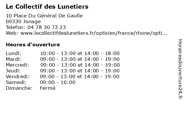 Lundi | 10:00-13:00 et 14:00-18:00 |