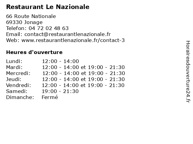 Jeudi | 12:00-14:00 et 19:00-21:30 |
