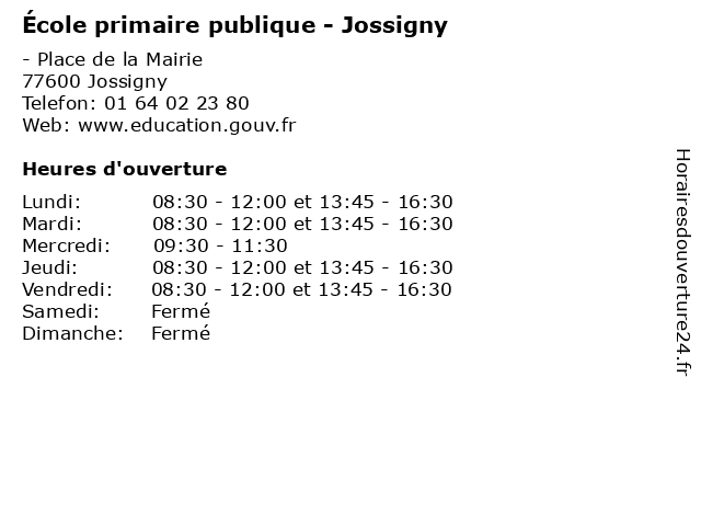 | Mardi | 08:30-12:00 et 13:45-16:30 |