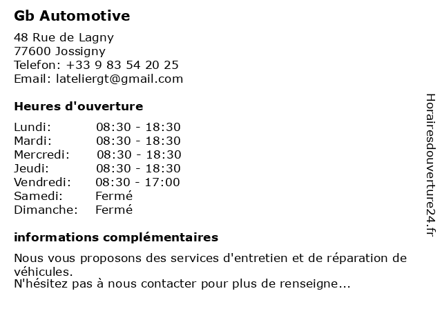 1 Geodis - Contract Logistics (Automotive) (Distance: 2,18 km) 4 avenue Bernard de Jussieu, 77700 Serris agence, automotive, colis, contract, envoi, expédition, geodis, logistics, transport 3 Automotive System Repair (Distance: 18,02 km) 11 Rue Louis Fournier, 77100 Meaux automobile, automotive, carrosserie, concessionnaire, entretien, garage, repair, réparation, system 4 Boucherie Gb (Distance: 18,12 km) 7 Rue Agnes Deniau, 93250 Villemomble boucherie, boucheries, gb, poissonneries 5 S.R.S Automotive Consulting (Distance: 18,44 km) 69 Route de la Queue en Brie, 94370 Sucy-en-Brie automotive, consulting, s.r.s 6 Auto-Ecole CER GB (Distance: 20,84 km) 1 rue Bobillot, 94100 Saint-Maur-des-Fossés auto, auto école, cer, conduite, cours, de, ecole, gb, instructeurs, maur, permis, st |