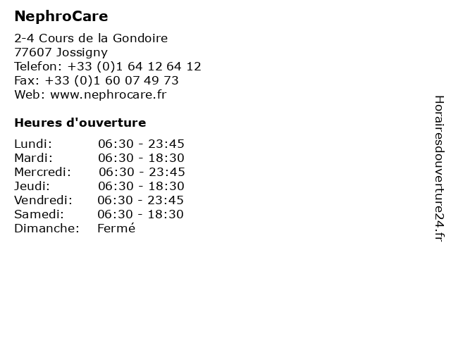 1 NephroCare (Distance: 13,10 km) 1 Rue de la Liberté, 77500 Chelles care, centre, dialyse, nephro, nephrocare, néphrologie 2 NephroCare (Distance: 14,15 km) 5 rue du Fort, 77340 Pontault-Combault care, centre, dialyse, nephro, nephrocare, néphrologie 3 NephroCare (Distance: 15,38 km) 10 Rue du Général Leclerc, 93370 Montfermeil care, centre, dialyse, nephro, nephrocare, néphrologie 4 NephroCare (Distance: 18,48 km) 71 ter Boulevard du Midi, 93340 Le Raincy care, centre, dialyse, nephro, nephrocare, néphrologie 5 Aura Meaux - Unité d’autodialyse assistée (Distance: 14,46 km) 45 Rue de la Crèche, 77100 Meaux assistée, aura, centre, dialyse, d’autodialyse, hémodiafiltration, hémodialyse, meaux, unité 6 Dr Régine Monkam - Néphrologue (Distance: 15,65 km) 6-8 Rue Saint-Fiacre, 77100 Meaux docteur, dr, monkam, médecine, néphrologie, néphrologue, régine |