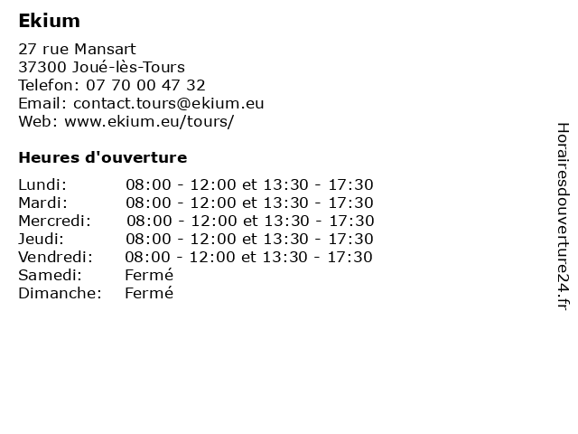 | Mardi | 08:00-12:00 et 13:30-17:30 |