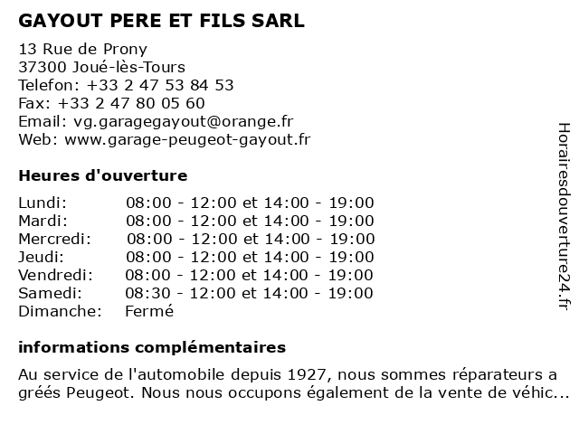| Samedi | 08:30-12:00 et 14:00-19:00 |