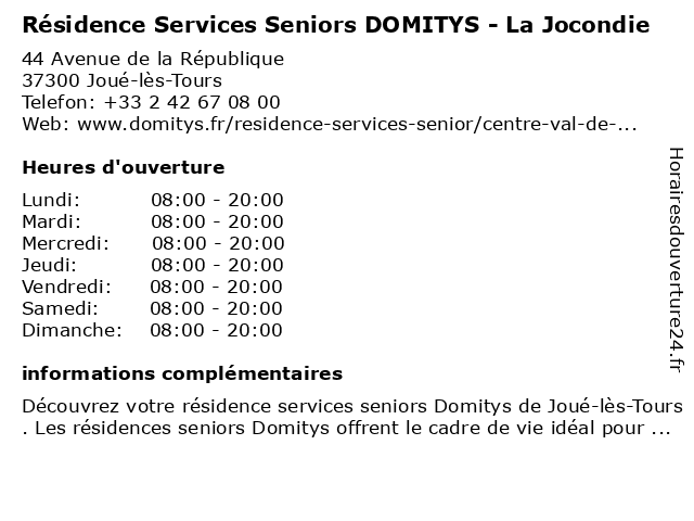 1 Résidence Etudiante Gaya - SuitEtudes (Distance: 2,25 km) 55 Avenue Edouard Michelin, 37200 Tours actifs, etudiante, gaya, jeunes, résidence, résidences, suitetudes, étudiantes 2 Cardinal Campus - Résidence étudiante Campus Tours (Distance: 2,70 km) 49 Avenue de Bordeaux, 37300 Joué-les-Tours campus, cardinal, logement, résidence, student, tours, universitaire, étudiant, étudiante 3 Résidence autonomie Les Fosses Boissées (Distance: 6,35 km) 23 Rue du Capitaine Lepage, 37540 Saint-Cyr-sur-Loire autonomie, boissées, fosses, les, résidence 4 EHPAD - Résidence François Hardouin (Distance: 7,54 km) 24 rue François Hardouin, 37100 Tours ehpad, foyer, françois, hardouin, hébergement, retraite, résidence, soins 5 La Résidence - Restaurant Traditionnel (Distance: 8,10 km) 13 Rue Du Val De l Indre, 37260 Monts bar, bistro, bistrot, brasserie, café, la, pub, restaurant, restauration, resto, résidence, traditionnel 6 Résidence Seniors Tours - Les Girandières (Distance: 8,35 km) 131 Rue du Colombier, 37100 Tours agees, ephad, girandières, les, maison, personnes, retraite, résidence, seniors, service, tours |