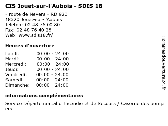 | Samedi | 00:00-24:00 |