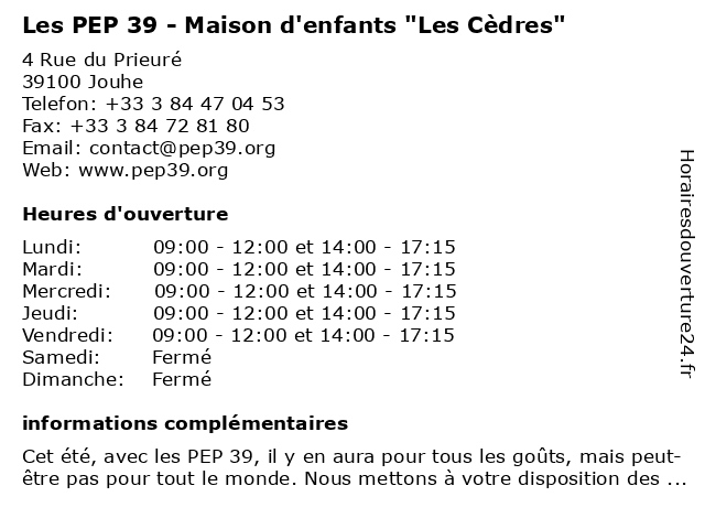 Termes de recherche pour Les PEP 39 - Maison d'enfants "Les Cèdres":les, 39, maison, d'enfants, "les, pep, cèdres" |