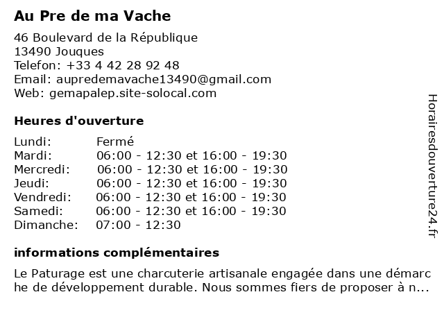 | Lundi | Fermé |