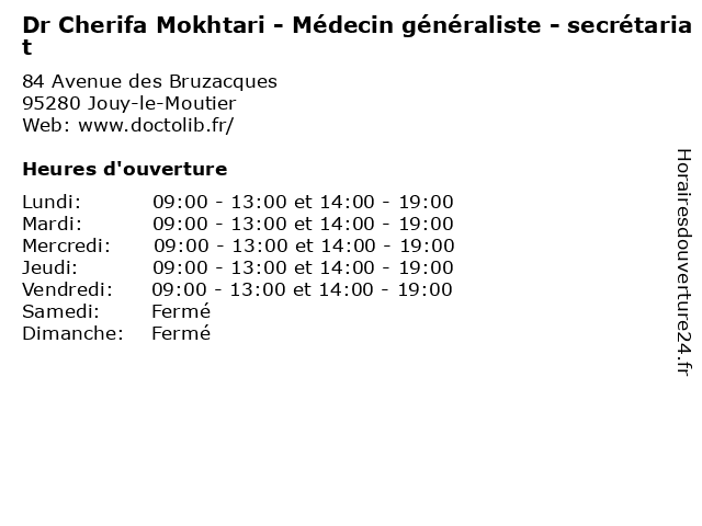 | Lundi | 09:00-13:00 et 14:00-19:00 |