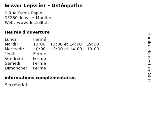 Mercredi | 10:00-13:00 et 14:00-19:00 |