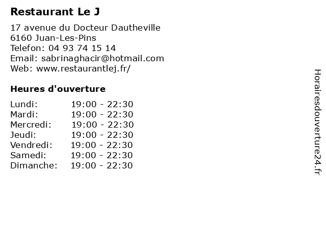 | Samedi | 19:00-22:30 |