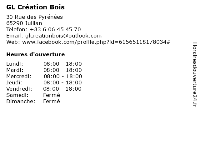 1 Multi-accueil Le Bois Joli (Distance: 3,41 km) - Rue Morane Saulnier, 65000 Tarbes accueil, bois, crèches, joli, le, multi, services, services à la personne 2 Villa Home Création (Distance: 5,01 km) 24 Boulevard du 8 Mai 1945, 65000 Tarbes création, home, villa 3 Chausson Bois Couverture (Distance: 5,71 km) 5 Rue jean-loup chrétien, 65310 Laloubere bois, chausson, couverture 4 Logis Hôtel la Chaumière du Bois (Distance: 5,82 km) 4 Rue de l'Allée, 65420 Ibos bar, bois, chaumière, du, hotel, hôtel, la, logis, restaurant, réunions, évenements 6 Brau Structures Bois (Distance: 19,02 km) 32 Avenue Maquis de Payolle, 65200 Bagnères-de-Bigorre bois, brau, structures |