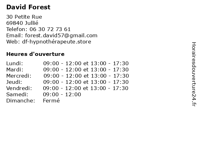 | Jeudi | 09:00-12:00 et 13:00-17:30 |