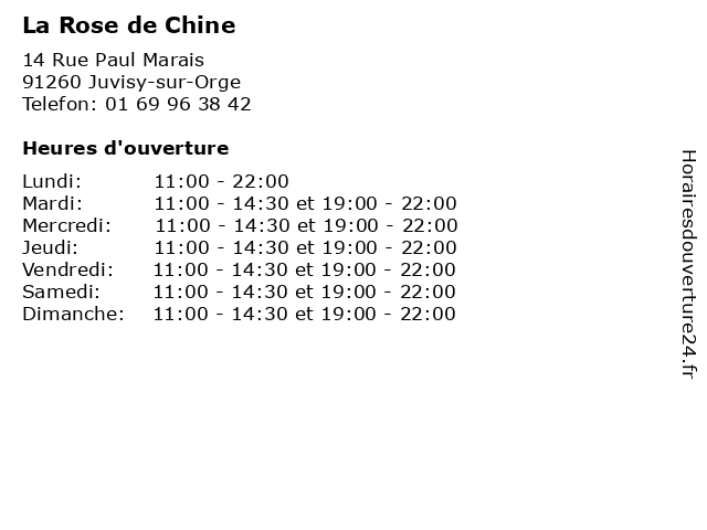 | Dimanche | 11:00-14:30 et 19:00-22:00 |