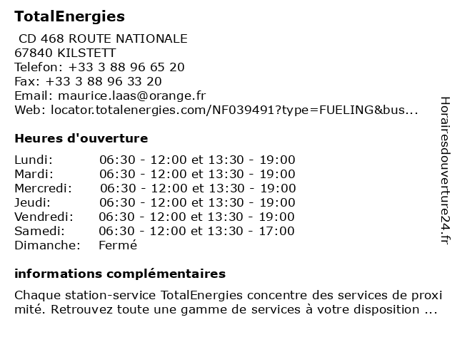 | Lundi | 06:30-12:00 et 13:30-19:00 |