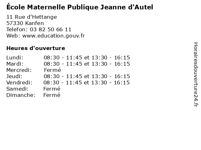 | Mardi | 08:30-11:45 et 13:30-16:15 |