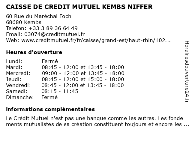 Termes de recherche pour CAISSE DE CREDIT MUTUEL KEMBS NIFFER:de, kembs, crédit, mutuel, caisse, niffer |