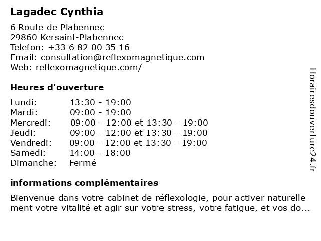 | Mercredi | 09:00-12:00 et 13:30-19:00 |