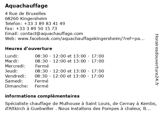 1 Aquachauffage (Distance: 0,01 km)4 Rue de Bruxelles, 68260 Kingersheim aquachauffage