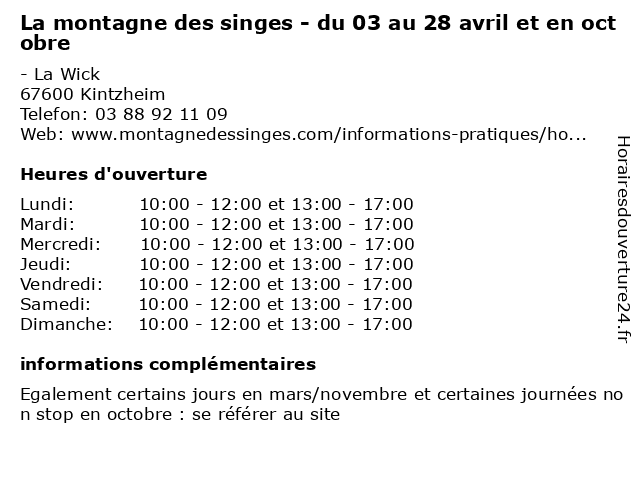 | Mardi | 10:00-12:00 et 13:00-17:00 |