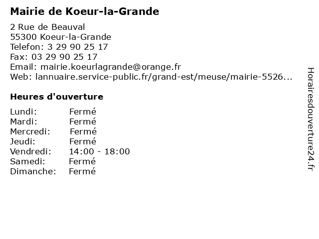 Termes de recherche pour Mairie de Koeur-la-Grande:la, de, grande, administration, mairie, assoc public, koeur |