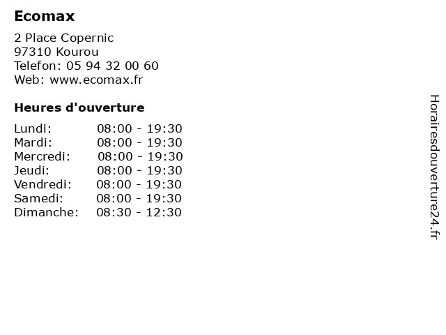 | Lundi | 08:00-19:30 |