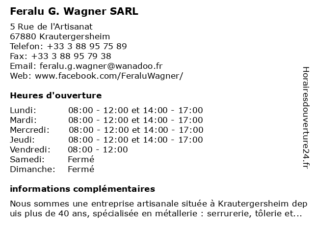 Termes de recherche pour Feralu G. Wagner SARL:sarl, g., wagner, feralu |