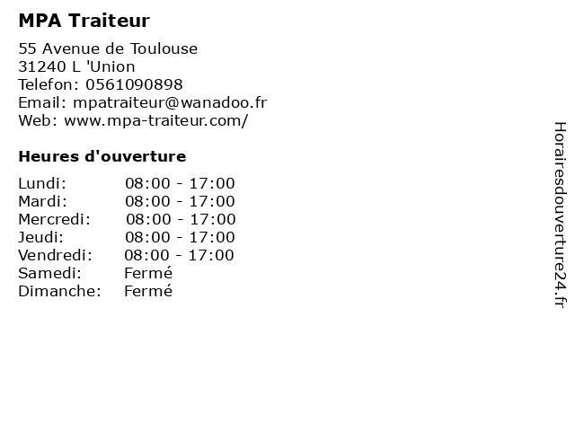 | Lundi | 08:00-17:00 |