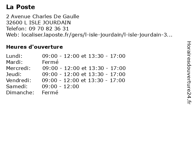 1 La Poste (Distance: 6,51 km) - Avenue Victor Capoul, 32600 Pujaudran colis, express chronopost, expédition, la, poste, réexpédition internationale, service, suivi du courrier 2 La Poste (Distance: 8,35 km) - Le Bourg, 32490 Monferran-Savès agence, assurance, banque, banque postale, bureau de poste, chronopost, colis, courrier, dps, expéditions internationales, la, point, postale, poste, relais, timbres, téléphonie, ups, western union 4 La Poste (Distance: 12,53 km) - Le Village, 31530 Thil colis, express chronopost, expédition, la, poste, réexpédition internationale, service, suivi du courrier 6 La Poste (Distance: 14,65 km) - Chemin des Chretias, 31530 Lévignac colis, express chronopost, expédition, la, poste, réexpédition internationale, service, suivi du courrier |