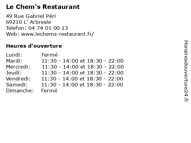 | Mardi | 11:30-14:00 et 18:30-22:00 |