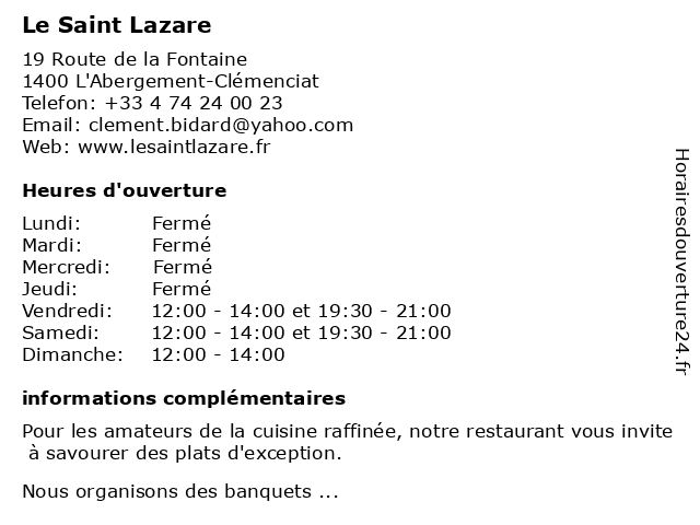 | Samedi | 12:00-14:00 et 19:30-21:00 |