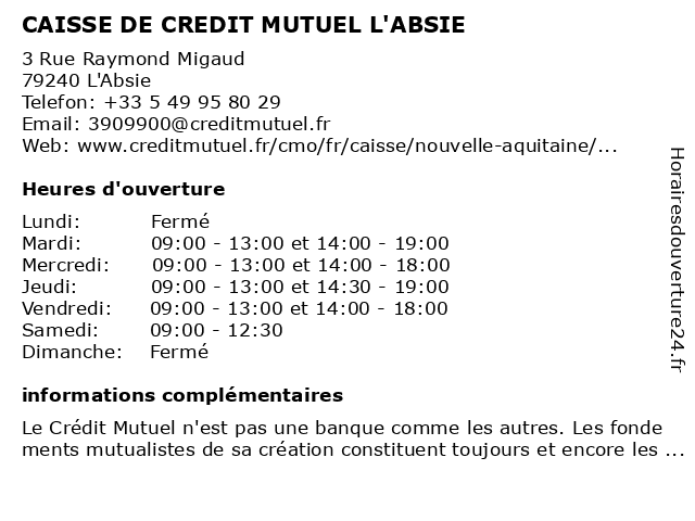 Termes de recherche pour CAISSE DE CREDIT MUTUEL L'ABSIE:de, crédit, mutuel, caisse, l'absie |