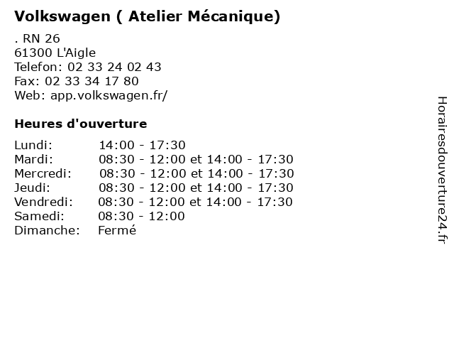 | Mardi | 08:30-12:00 et 14:00-17:30 |