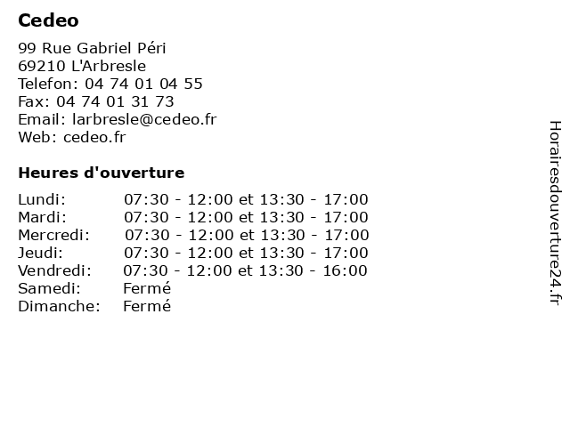 | Lundi | 07:30-12:00 et 13:30-17:00 |