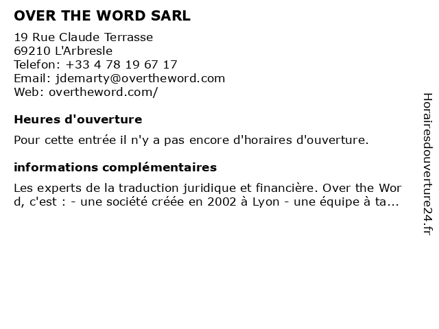 Appeler OVER THE WORD SARL | |