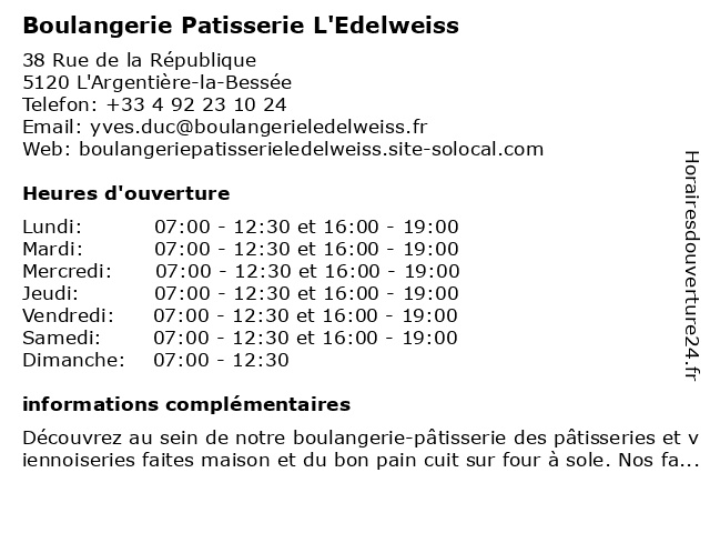 Termes de recherche pour Boulangerie Patisserie L'Edelweiss:boulangerie, pâtisserie, l'edelweiss |