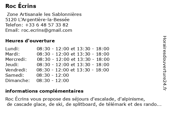 | Mardi | 08:30-12:00 et 13:30-18:00 |
